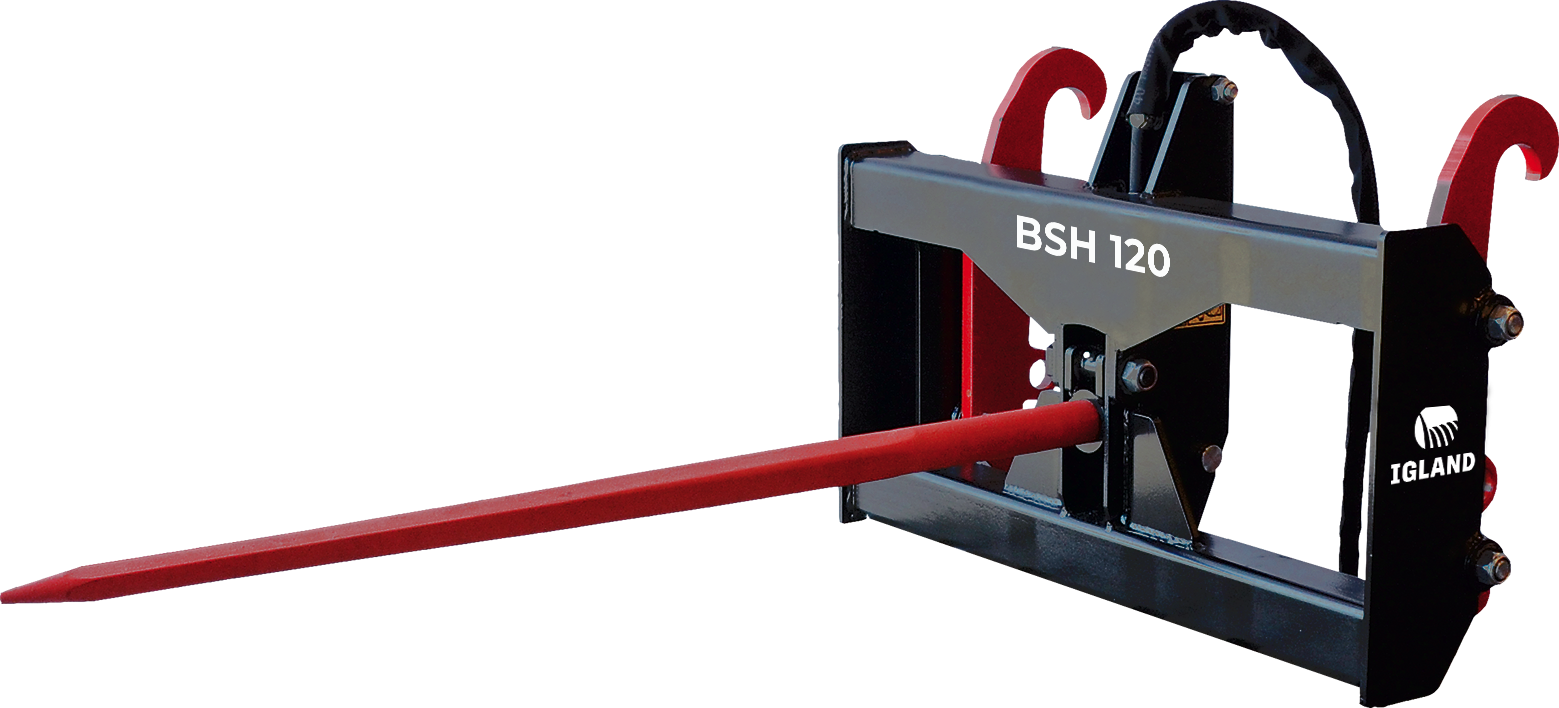Mechanical or hydraulical operated round bale spear for front loader. Easily tilted to transport position when the spear is not in use. Ensures safe transport, especially in the traffic. Comes with a single spear or 3 spears for better handling. Solid and powerful construction ensures reliability and durability. Optional mounting brackets.