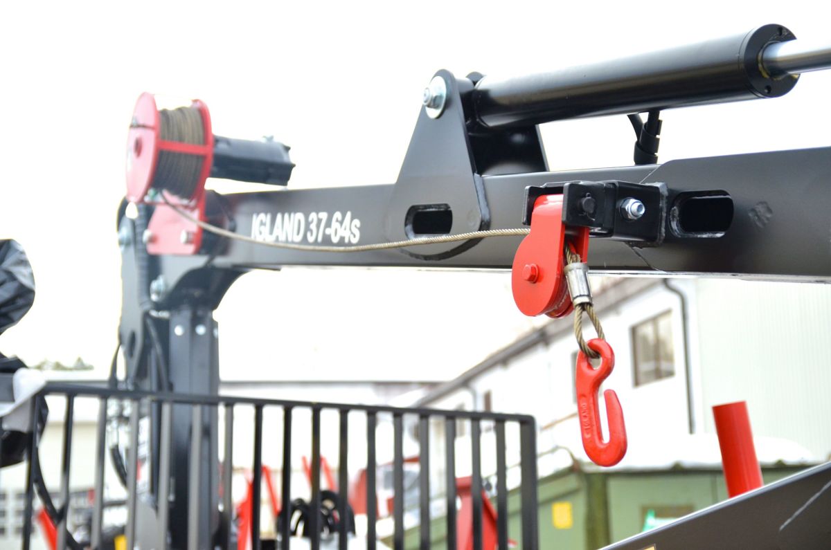 IGLAND 280 features a 7 ton load capacity on trailer and is delivered fully equipped, with crane, rotator and grapple. The crane is detachable and can be mounted on the 3-point hitch linkage of the tractor and is equipped with hydraulic fold-down stabilizer legs. The bogie is equipped with tire dimensions: 400 / 60 - 15.5 / 14 layer, 2 log retaining posts, one fixed and one adjustable. Boogie includes steering.