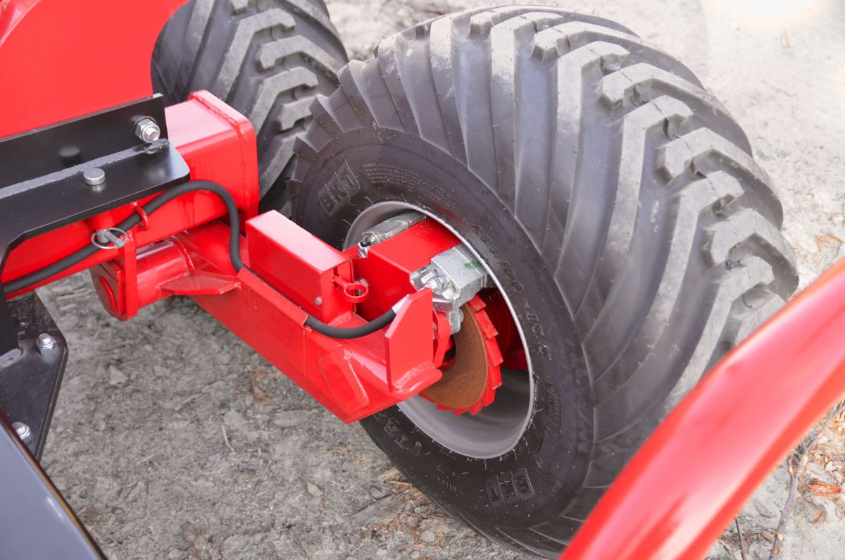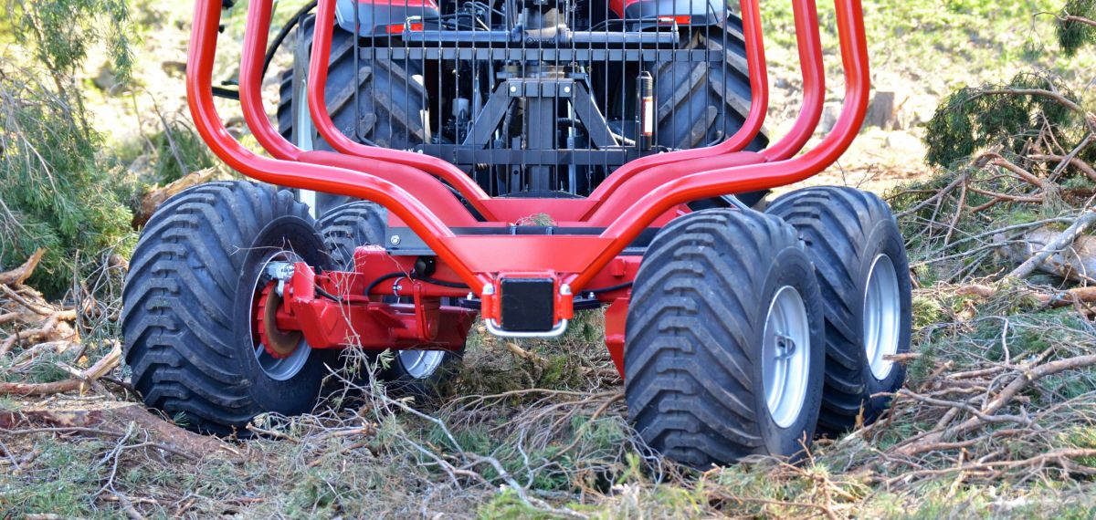 IGLAND 380 features a 7.5 ton load capacity on trailer and is delivered fully equipped, with crane, rotator and grapple. The crane is detachable and can be mounted on the 3-point hitch linkage of the tractor and is equipped with hydraulic fold-down stabilizer legs. The bogie is equipped with tire dimensions: 400 / 60 - 15.5 / 14 layer, 2 log retaining posts, one fixed and one adjustable. Boogie includes steering.