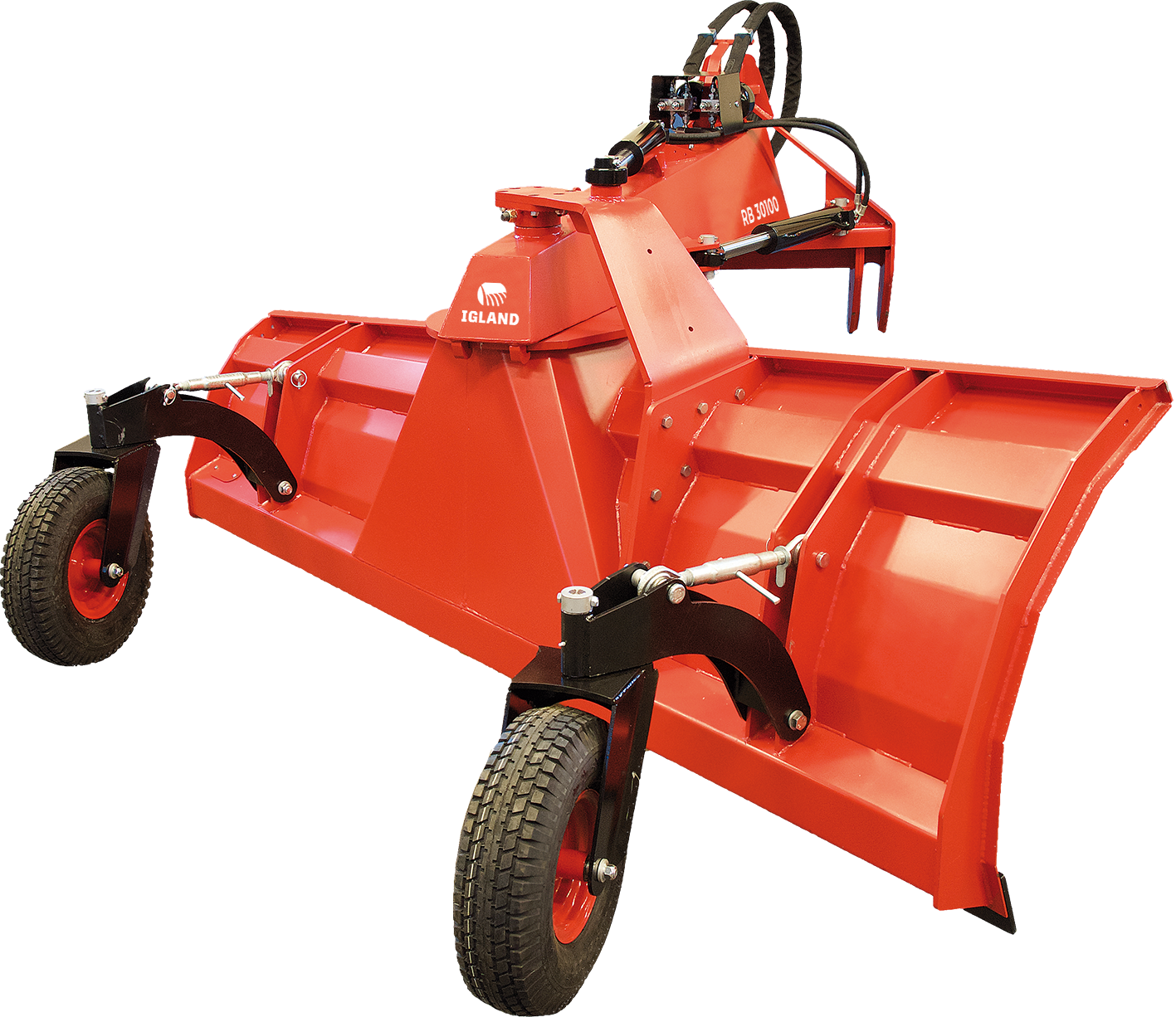 A 3 metre wide professional blade from IGLAND. Extra solid execution with a high capacity for larger tractors. The long arm leads the rear blade further out to the side, and makes it possible to operate on a bigger part of the road width. The height of the rear blade is rising from 70-100 cm. It has a good capacity to shove large amounts of snow, or to distribute the gravel evenly over the road width.