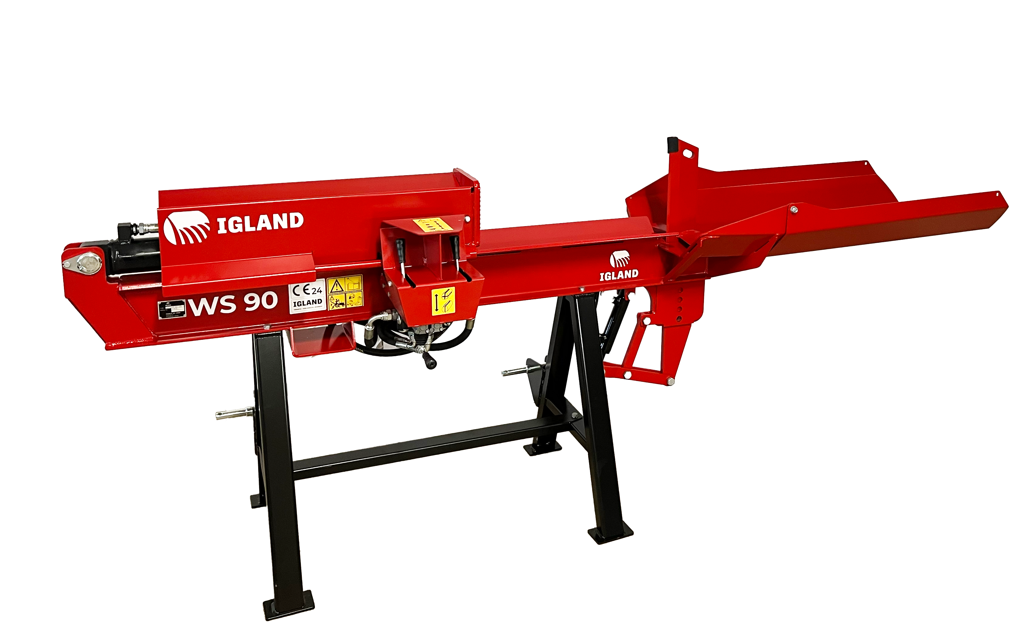 Powerful and reliable wood splitter. This is a fast and efficient wood splitter with variable speed control. The splitting process is controlled by two levers located on the construction. WS 90 has a hydraulic adjustable splitting knife which is easily operated by a lever on the control centre, making the splitting process efficient with very good results. This is the splitter for those who want to work in a professional and safe manner. The log lies in a stable V-shaped cradle and can be divided into optional 2 or 4 parts. Splitting can be varied from 20 cm to 65 cm. The machine can be moved easily by its 3-point attachment or by using a pallet fork.