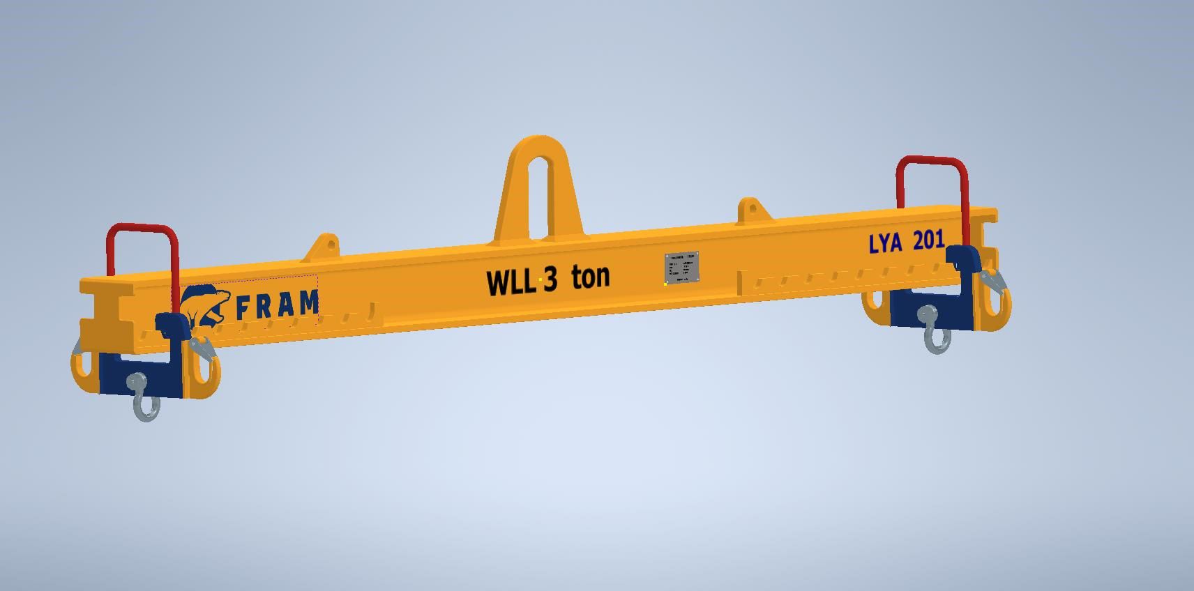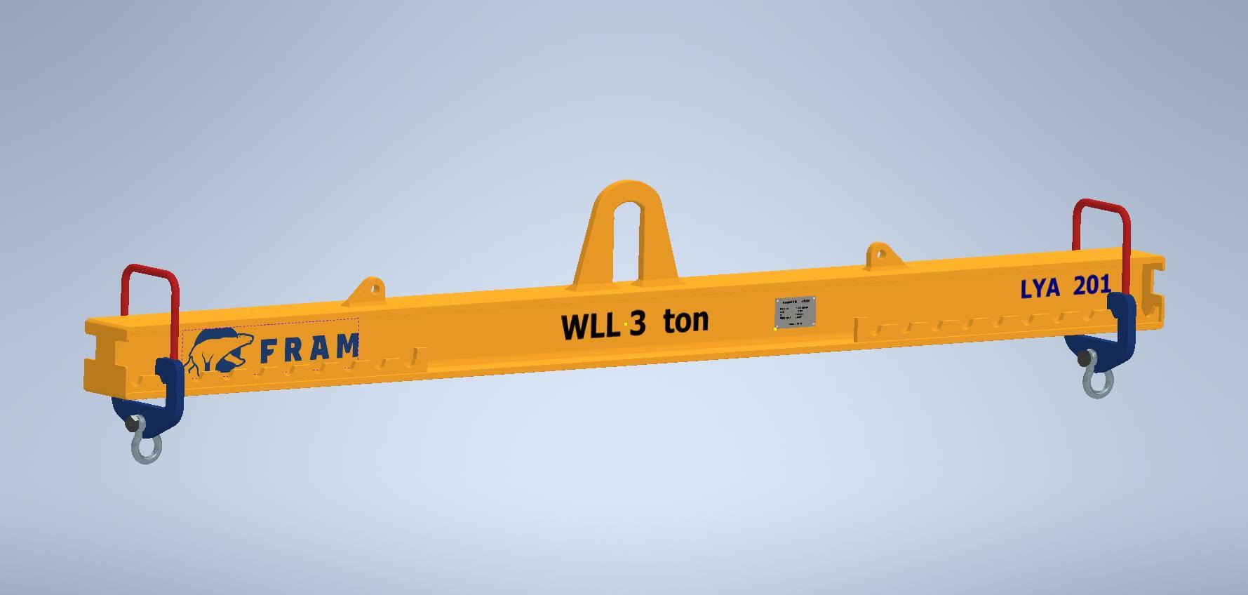 FRAM Lifting Yoke LYA 201 is supplied in lengths from 1.0 to 6.0 metres. WLL from 2.0 tonnes to 10.0 tonnes according to Machine Directive 2006/42EC and EN13155.