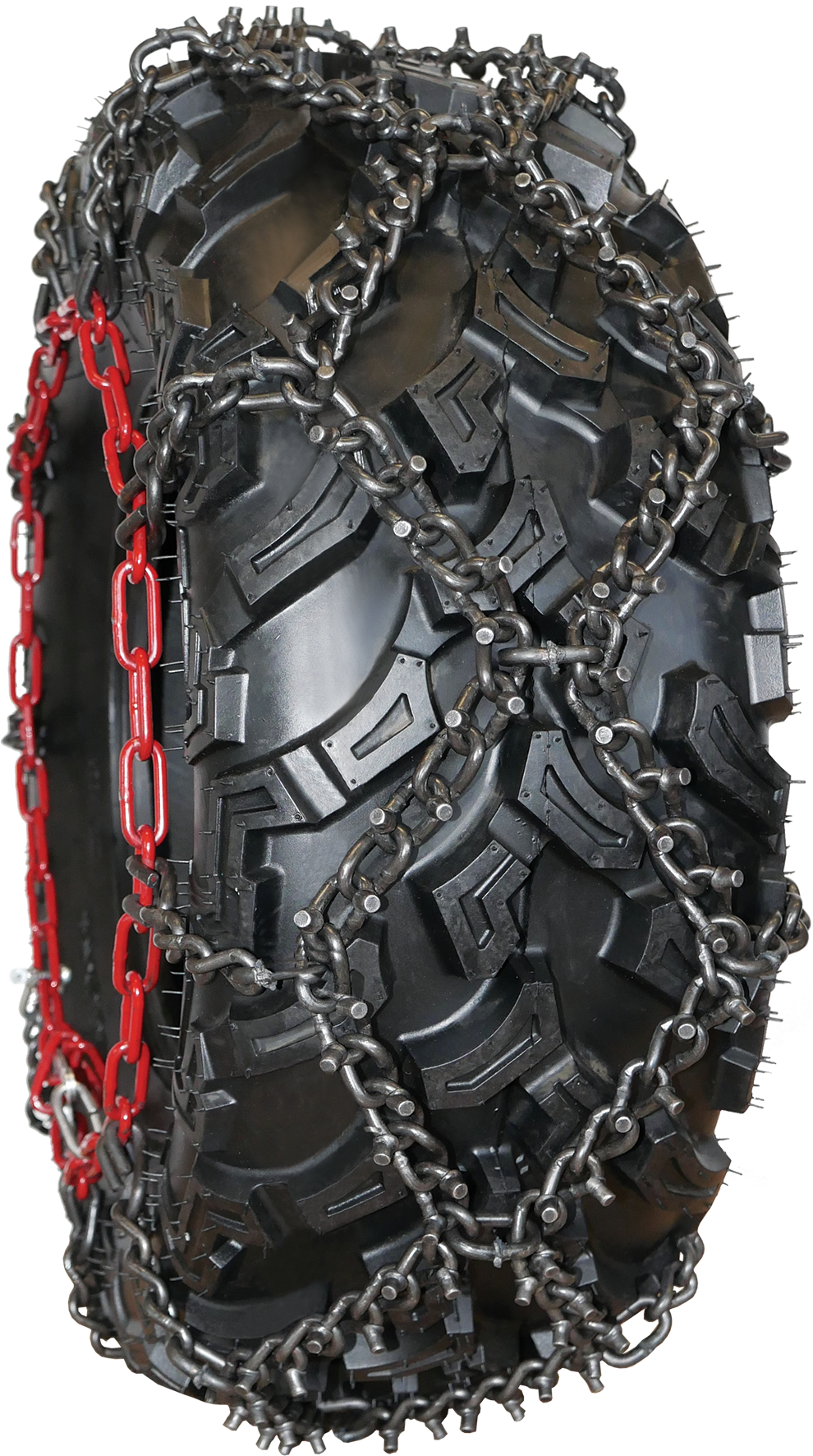 Fully floating diamond-pattern chain for ATVs, compact loaders, lawn tractors, and other small machines. Made from flexible and durable 5.5 mm or 6 mm twisted studded chain. Studs on every other link ensure greater pressure per stud, significantly improving grip and traction.