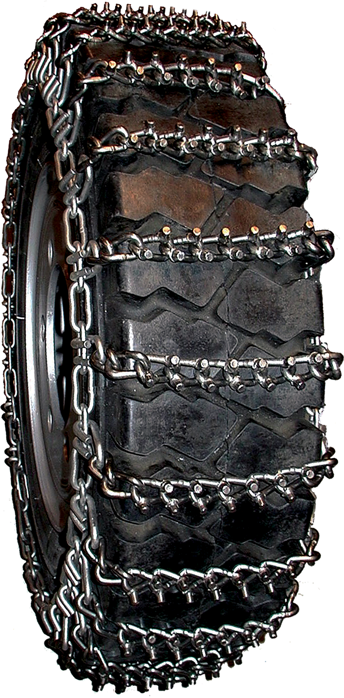 Chain for forklifts and other small machines with studs provides extra grip. Also available in a close-linked version for even better traction and a more comfortable ride. The chain is made from high-quality boron steel and features welded 6 mm round studs.