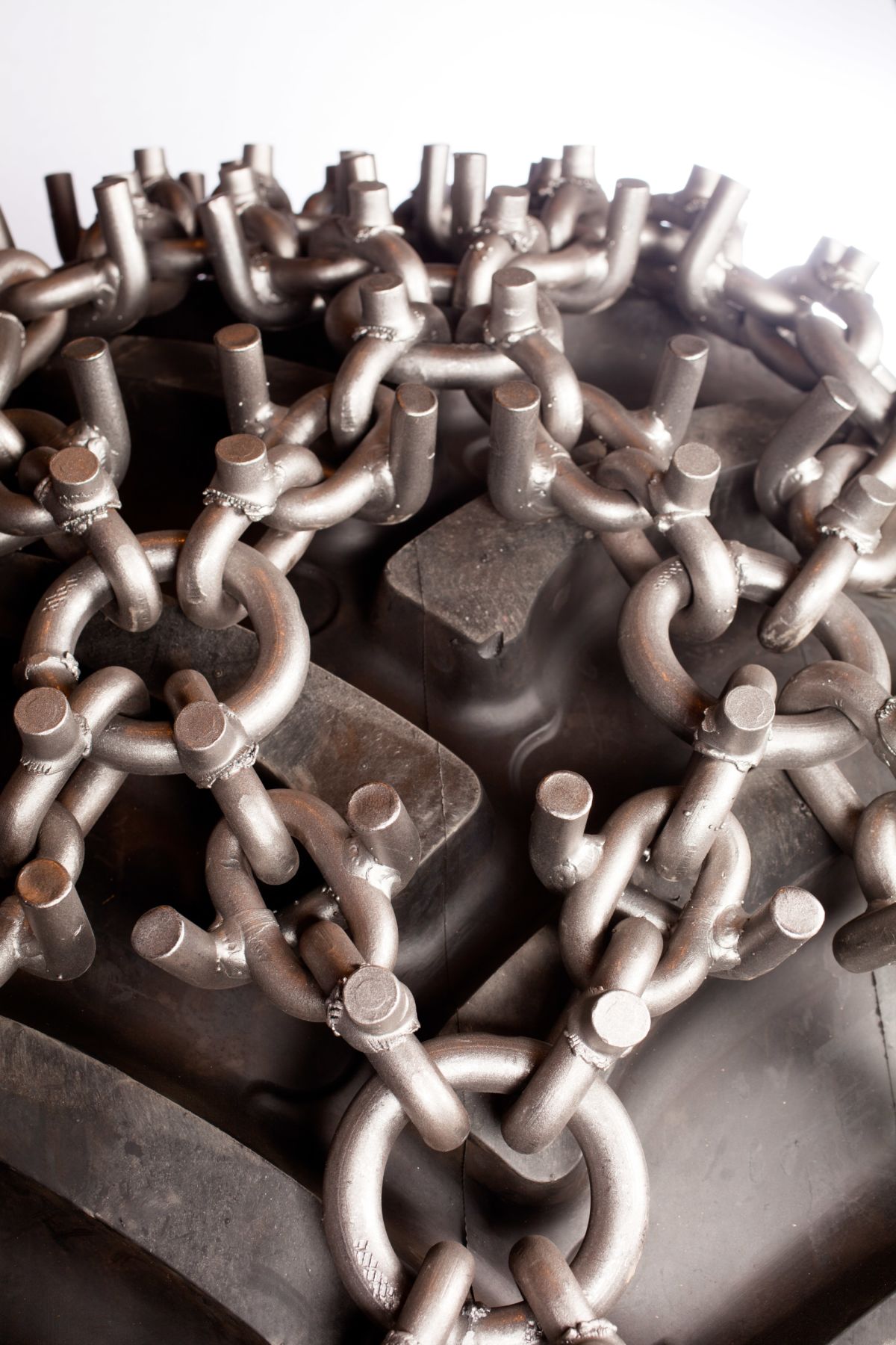 The chain features extra-wide studs that are welded under the horizontal chain links and remain upright throughout the chain’s entire lifespan.