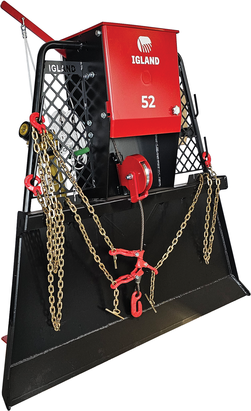 Igland 52 er en enkel, sterk og solid vinsj med trekkraft på 5,2 t. Egner seg godt til landbrukstraktorer fra 60 hk og oppover. Vinsjen er utstyrt med palsperre (trommel-lås) som gjør vinsjen enkel i bruk. Særdeles enkle funksjonsprinsipper, som krever lite vedlikehold og gir pålitelig drift. Leveres med snorbetjening eller radiostyring. Vinsjen har subbebrems som hindrer avsporing av ståltauet på trommelen. Akseltapp er justerbar for god passform til traktor. Vinsjen har stor lunnepanne og 3-pkt feste med kategori 1, 2 og 3.